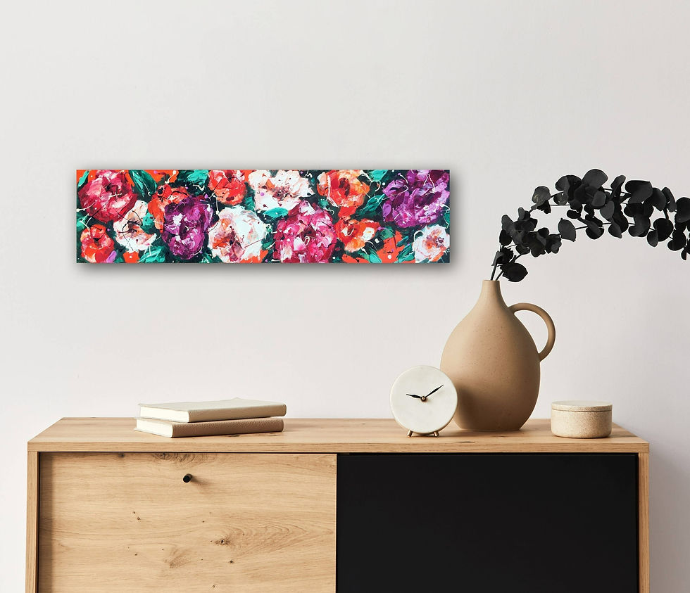 La série Les Fleurs évoque la renaissance, le printemps et la légèreté. Elle est abordée avec une entière liberté par la gestuelle instinctive de la spatule.